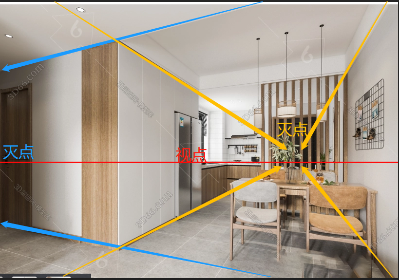 滅點(diǎn):透視點(diǎn)的消失點(diǎn)